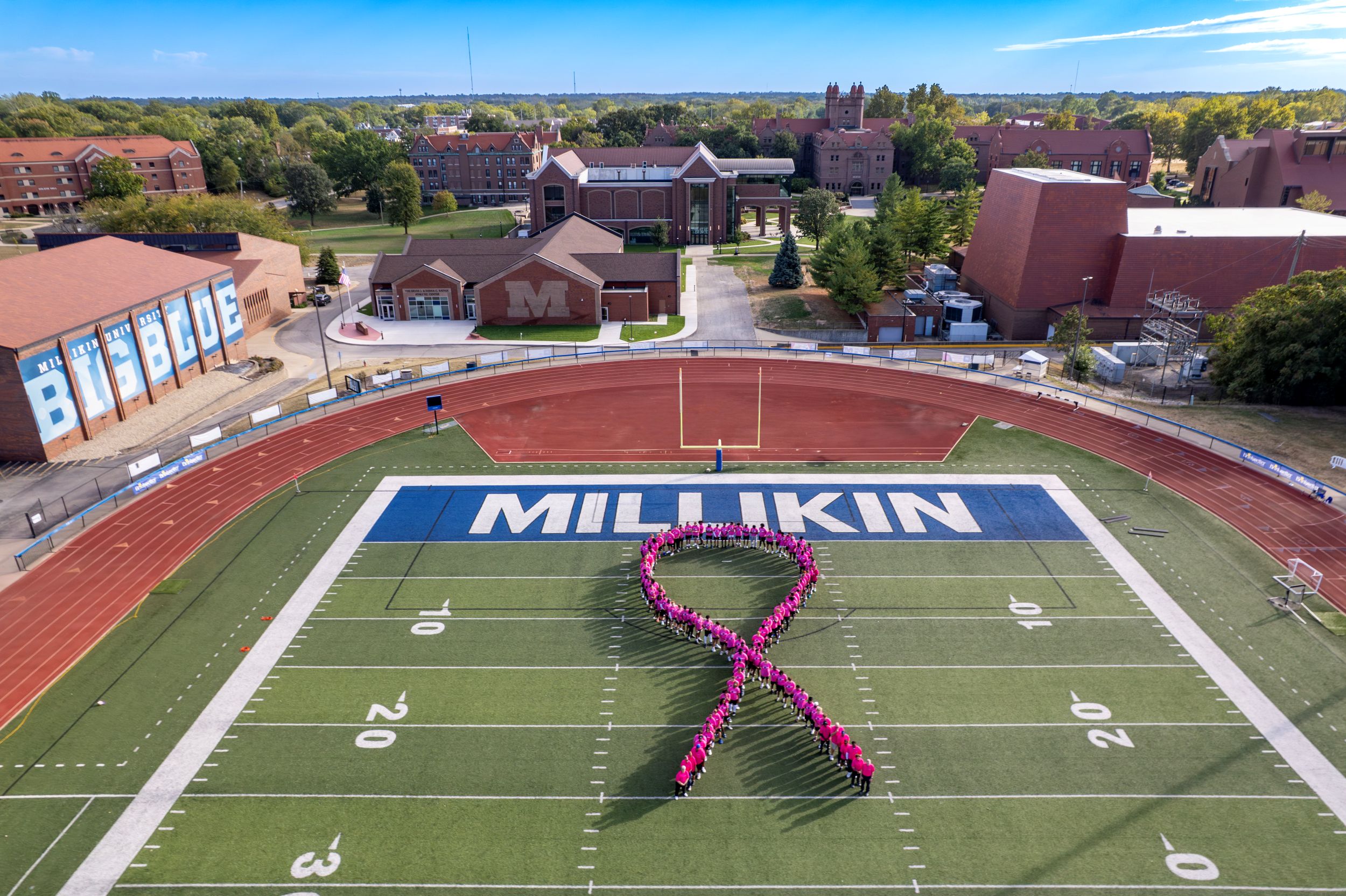 Millikin University and HSHS St. Mary’s Hospital are teaming up to raise awareness for breast cancer during the Real Men Wear Pink football game on Saturday, Nov. 1 at 1 p.m. at Frank M. Lindsay Field versus Washington University.