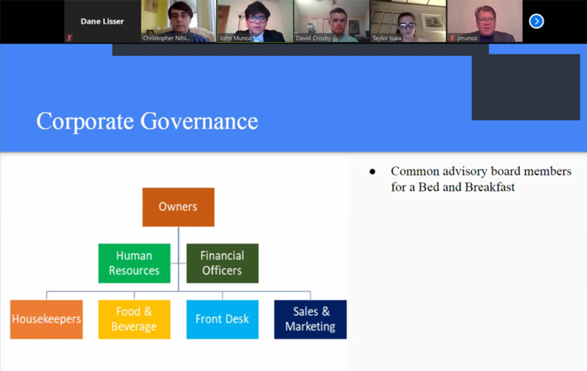 Students spent the semester learning theories relating to business strategy. Aside from the theories, the students also conducted research on the bed and breakfast and hospitality industry; coordinated with the client and collaborated with experts and mentors to gather fresh insights for their strategic plans.